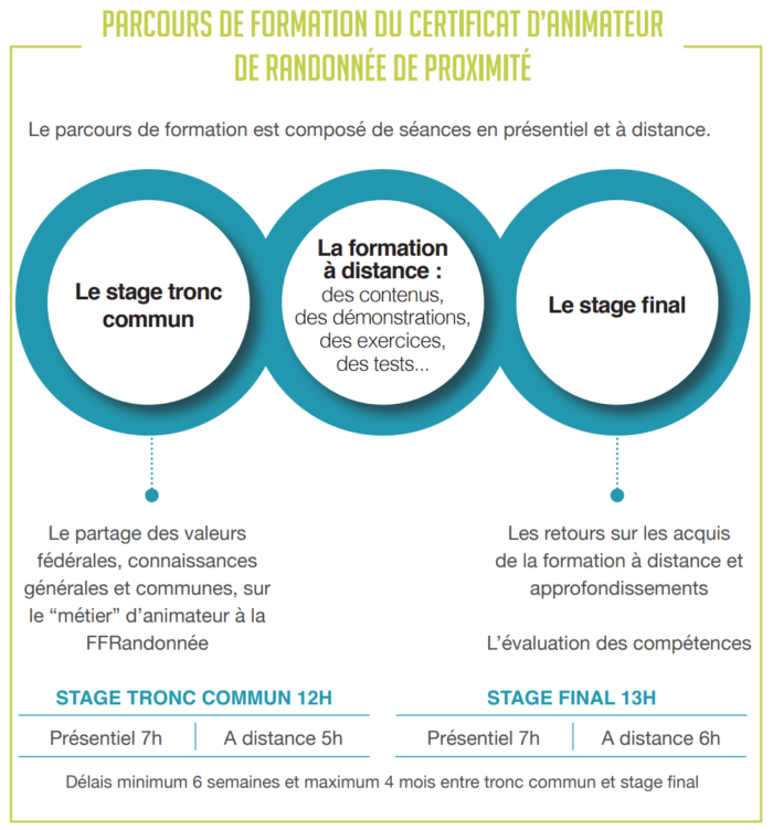 Pour en savoir plus, se reporter au Référentiel de formation du certificat d’animateur de randonnée de proximité.