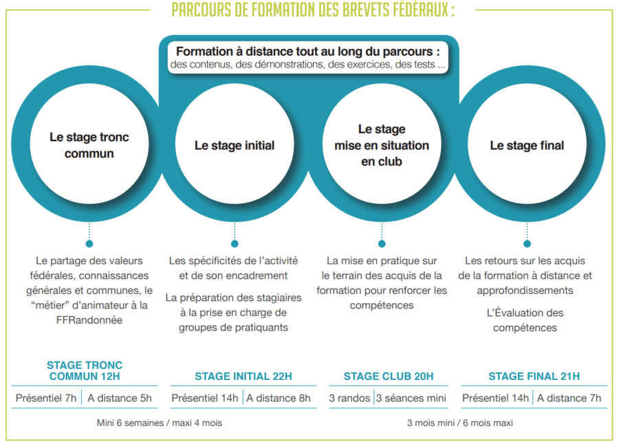 Pour en savoir plus, se reporter au Référentiel de formation du brevet fédéral d’animateur de randonnée pédestre.