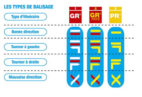 Les PR sont des itinéraires de Promenade et Randonnée (balisage rectangle jaune).