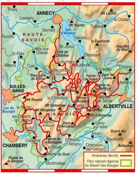 - Le réseau du Massif des Bauges qui figure sur le topoguide Tours et traversées du Massif des Bauges.